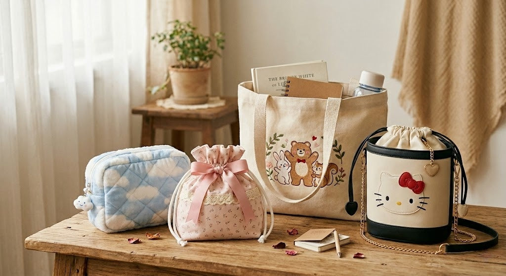 Dreamy Cloud Bubble Pouch Ribbon Bow Drawstring Pouch Cute Animal Embroidery Large...