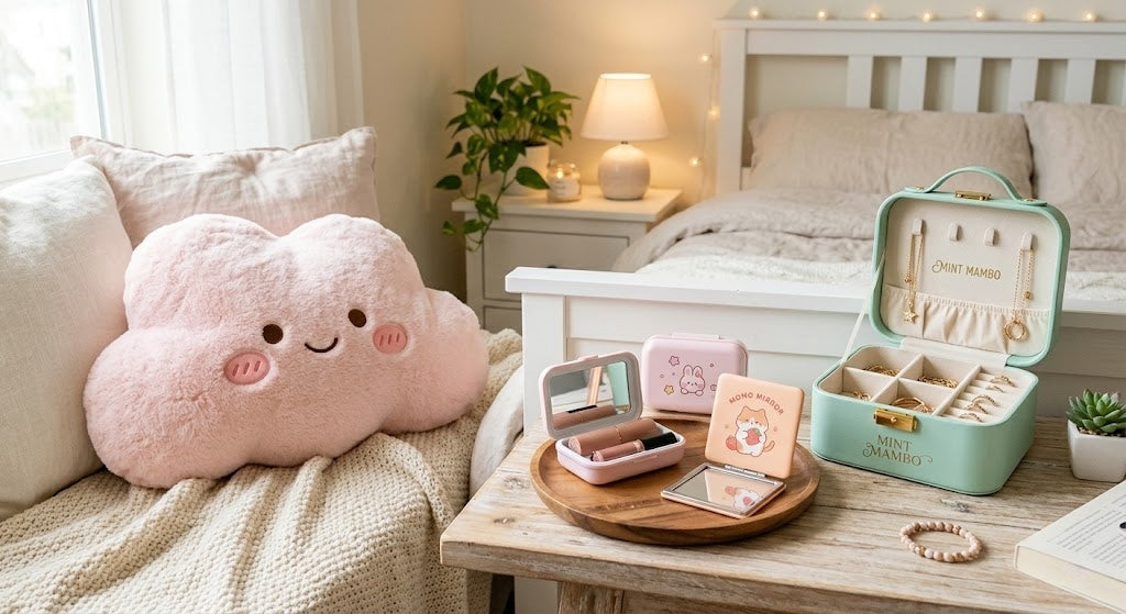 Healing Plush Cushion Kawaii Mini Lipstick Case With Mirror Kawaii Folding Mirror ...