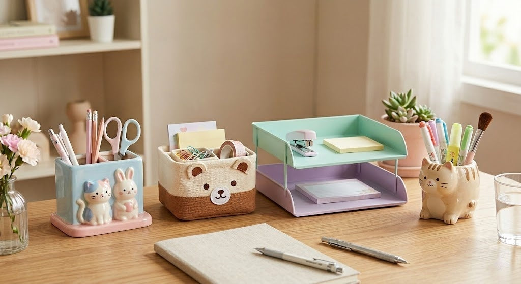 Pastel Metal Desk Organizer Tray Sweet Cat & Bunny Desk Organize Kitten...